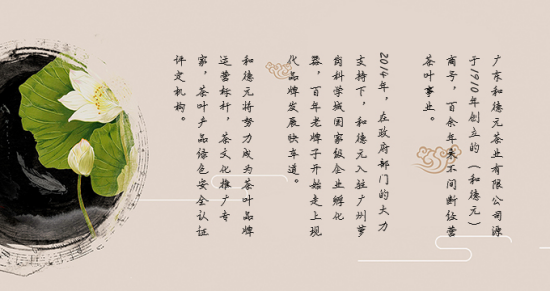 公司品牌“和德元”始創(chuàng)于1910年(宣統(tǒng)二年),經(jīng)歷了百年的積淀,廣東和德元茶業(yè)有限公司擁有豐富的行業(yè)經(jīng)驗,產(chǎn)品獲得眾多消費者的好評,在社會各階層和廣大客戶和支持下,公司各項業(yè)務持續(xù)發(fā)展,為了適應新業(yè)務的發(fā)展要求,我們誠摯歡迎熱愛茶業(yè)行業(yè),勇于接受挑戰(zhàn)、德才兼?zhèn)涞娜瞬偶尤胛覀兊男辛校矂?chuàng)輝煌!