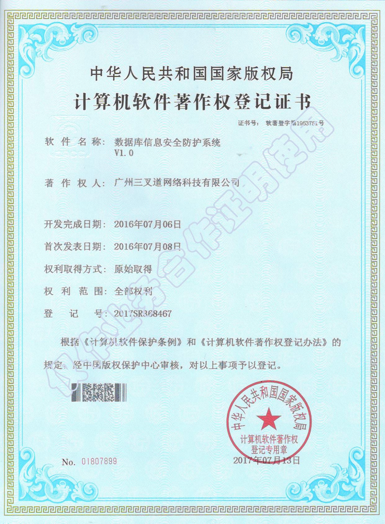 數(shù)據(jù)庫信息安全防護系統(tǒng)-著作權(quán)